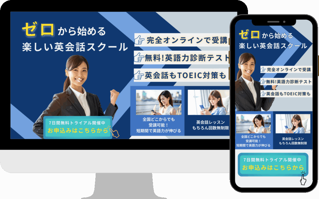 毎月の数値の変動に合わせて、バナーの作り直し・新提案を無料で行っております。数値を元にA/Bテストを行い、よりターゲットに届く広告に改善し続けていきます。